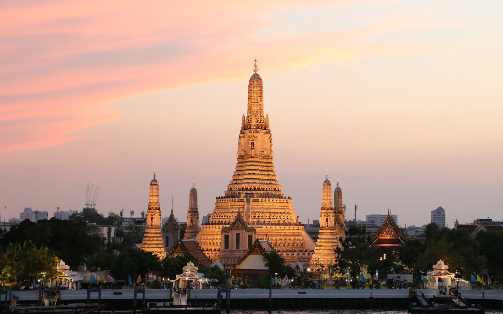 A beautiful riverside temple known for its unique design and stunning views of the Chao Phraya River.