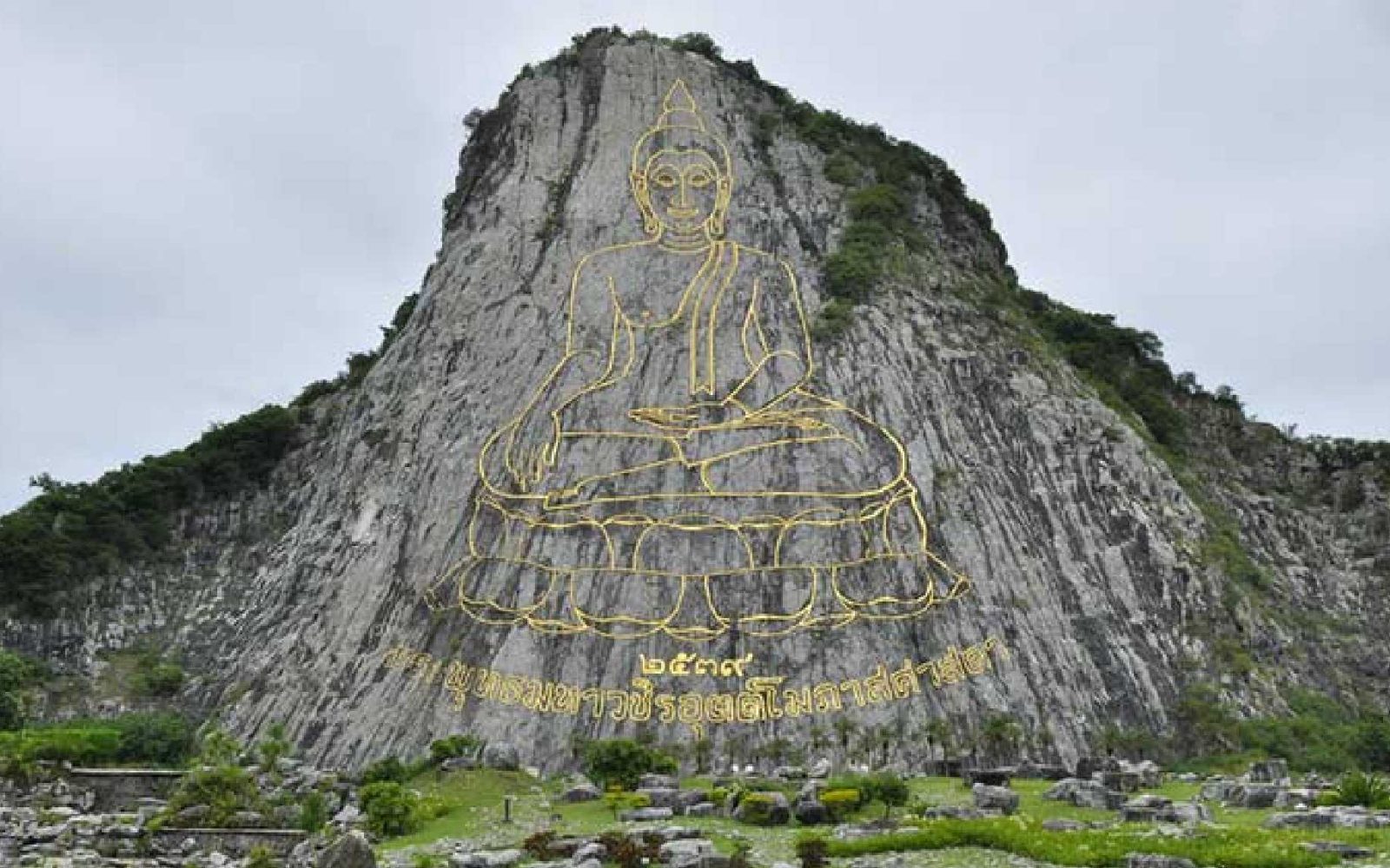 A giant Buddha image carved into the side of a mountain, one of Pattaya's most iconic landmarks.
