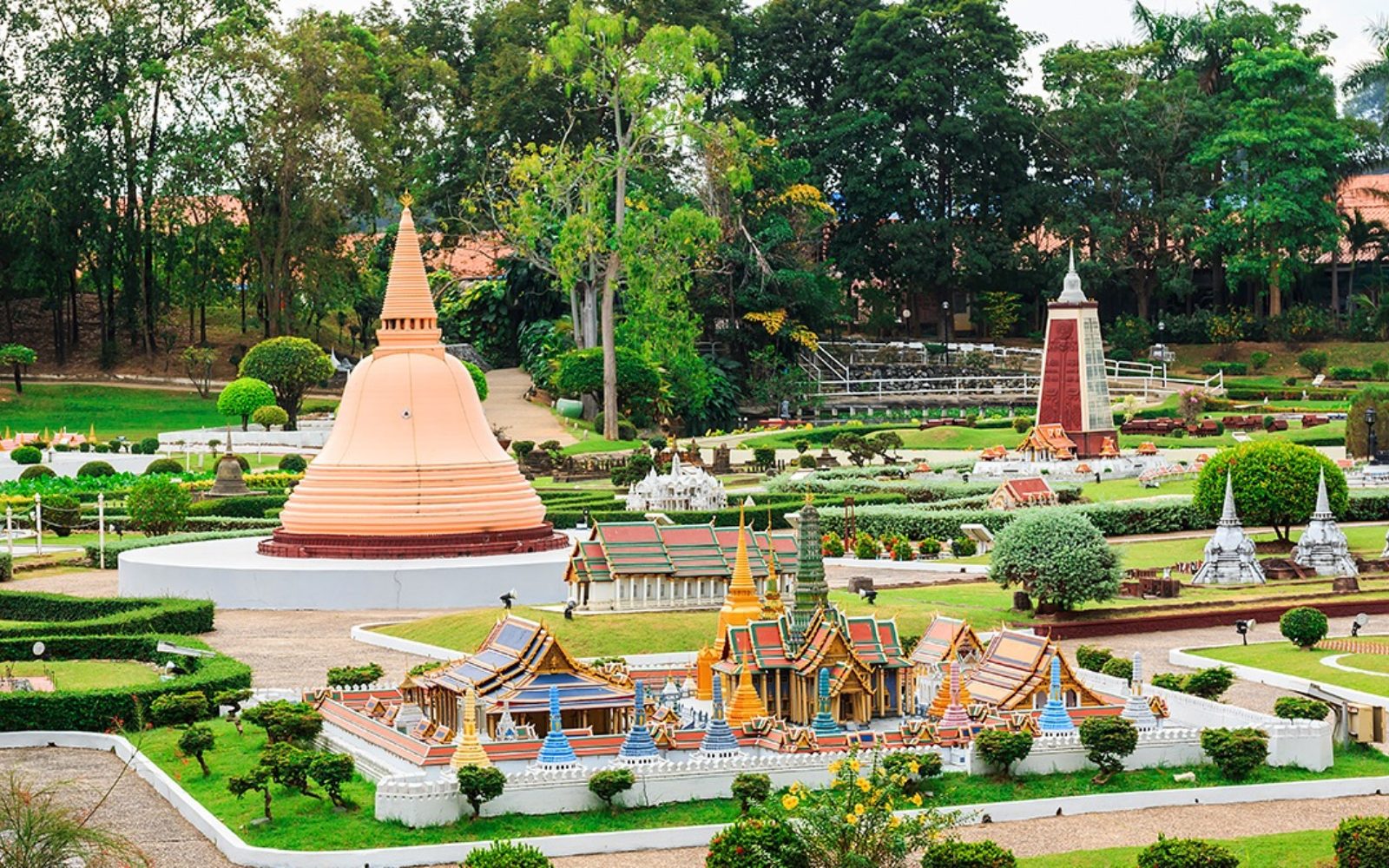 A miniature park featuring replicas of famous landmarks from Thailand and around the world.