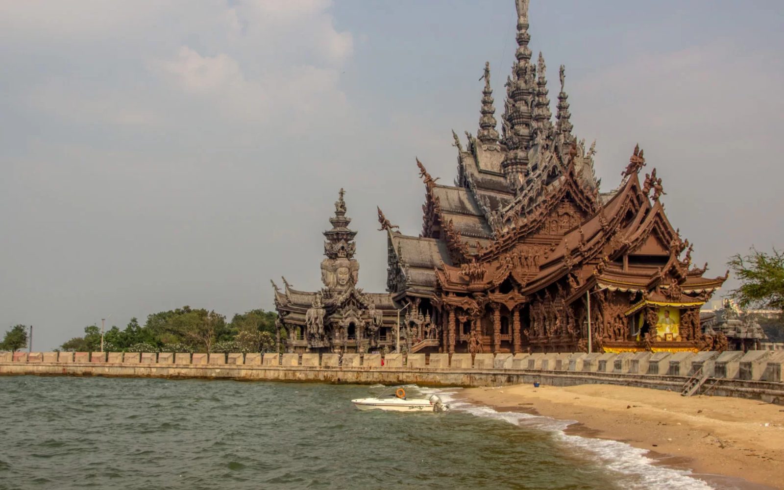 A temple with a large Buddha statue offering panoramic views of Pattaya.